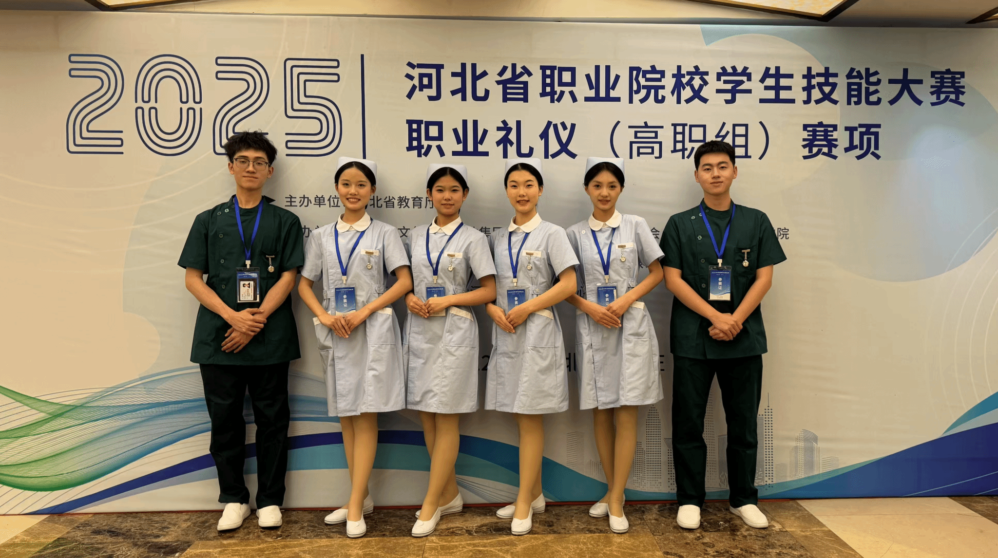 12月26日,河北省教育厅主办,河北省文化创意职教集团、河北省礼仪文化教育学会联合承办的2025年河北省职业院校学生技能大赛“职业礼仪”(高职组)比赛在石家庄财经职业学院隆重召开。必赢护理系护理礼仪队获得团体三等奖。