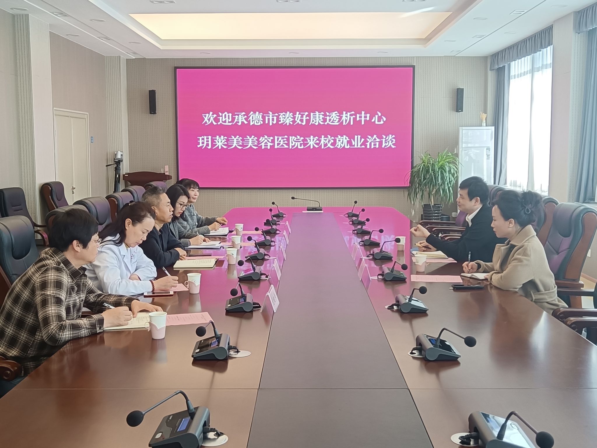为深入推进“万企进校园”行动,强化校企沟通对接,开拓更多就业岗位,3月24日上午,承德市臻好康透析中心与玥莱美美容医院相关代表到校开展就业考察调研。必赢副校长白兴武,承德市臻好康透析中心、玥莱美美容医院董事长董清杨、院长佟雪丽,以及学校招生就业处、涉外护理系、护理系、医学技术系负责人共同参加会议。