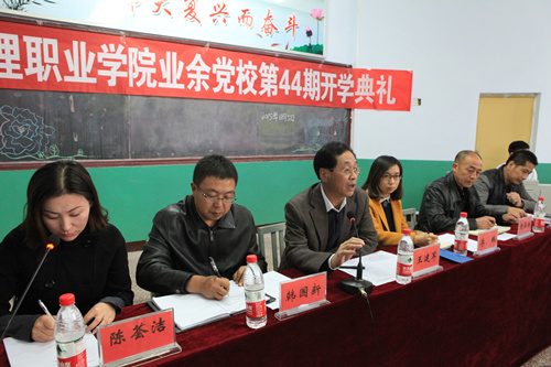 王建军副书记代表学院党委向138学员表示欢迎及祝贺,并为全体学员讲述了学院业余党校发展状况以及开办党课的重要意义,同时向全体学员提出了五点希望:一是要坚定理想信仰,相信党,热爱党,要有奋斗目标,全面建成小康社会,进而建成富强民主文明和谐的社会主义现代化国家,实现中华民族伟大复兴的中国梦。二是要提高政治理论素质,加强学习理论政策,学习中国特色理论、党章、习近平总书记的四中五中讲话精神,要关心国家大事,从思想上与党中央、学院党委保持一致,自觉执行党的路线方针政策,完成奋斗目标。三是要树立良好的品德,遵纪守法,不做违法乱纪的事。要有大局意识懂得帮助他人,关爱他人,同学间要相互关爱,心胸宽广,还要有政治敏锐性,作风正派不传教不迷信。四是要努力学习专业技术技能,学好专业知识,熟练技能操作,做一名技术过硬的好学生。五是要全面提升和拓展个人综合素质,时时处处事事为他人做榜样,率先垂范,起先锋模范带头作用。(团委)